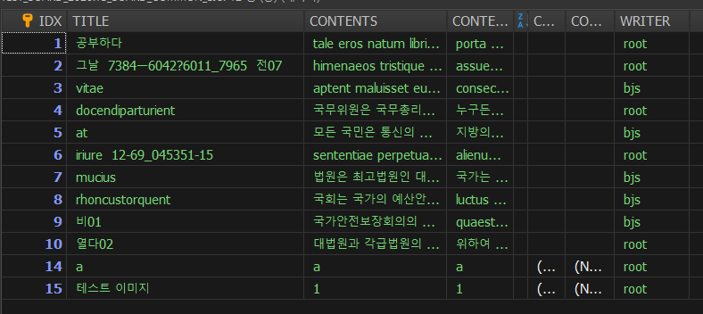 실제 테이블을 보면 WRITER는 2가지 종류고 NULL은 없다.
